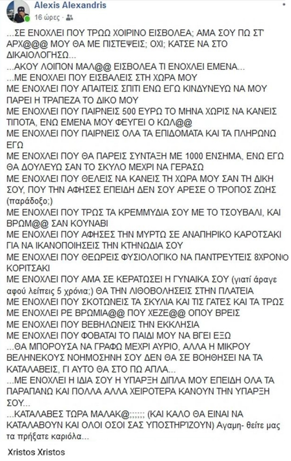«Εντάξει, εγώ μπορεί να ανήρτησα ένα φασιστικό παραλήρημα.