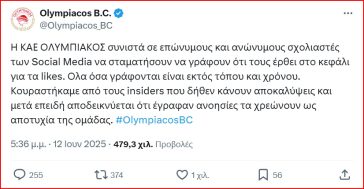 «Στο Μέλλον δεν θα λέμε ότι η “Κ.Α.Ε. Ολυμπιακός” θυμίζει καφενείο και κομμωτήριο,