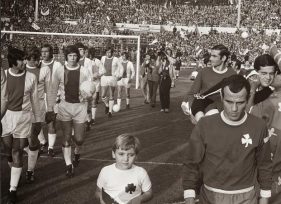 Ο Μίμης Δομάζος ως αρχηγός του Παναθηναϊκού εισέρχεται με την ομάδα του στο Γουέμπλεϊ