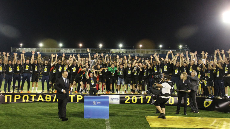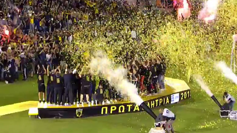 Η άστοχη κεφαλιά του Αραούχο στο 76′, μετά τη σέντρα του Μπακάκη, η σημαντική χαμένη ευκαιρία του Ναδάλες στο 80′, το φάουλ του Χριστοδουλόπουλου στην αγκαλιά του Χουάντερσον στο 82′ αλλά και το «ψαλιδάκι» του Λάζαρου που απέκρουσε ο πορτιέρε του Απόλλωνα, σήμαναν την έναρξη των πανηγυρισμών από παίκτες, προπονητικό τιμ και φιλάθλους της ΑΕΚ.