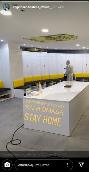 Παράλληλα, ο διευθυντής ποδοσφαιρικού τμήματος, Άγγελος Χαριστέας, δημοσίευσε μια φωτογραφία από την ώρα της απολύμανσης, στέλνοντας το δικό του μήνυμα στον κόσμο: «Σε ρυθμούς του ιού και η ομάδα, stay home».