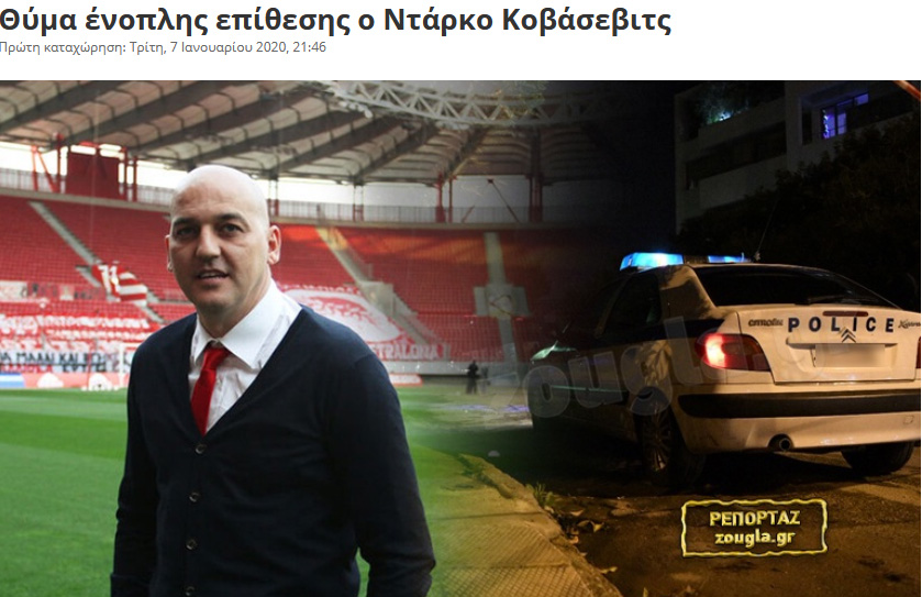 Υπενθυμίζεται ότι ο παλαίμαχος Σέρβος στράικερ το βράδυ της 7ης Ιανουαρίου δέχτηκε ένοπλη επίθεση από άγνωστο άνδρα στη Γλυφάδα.