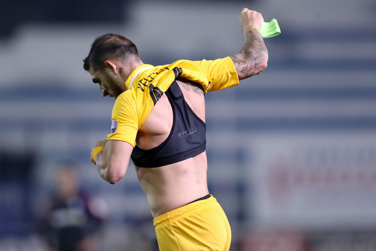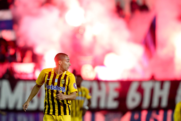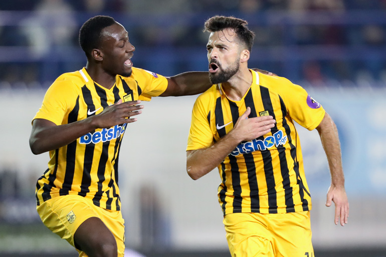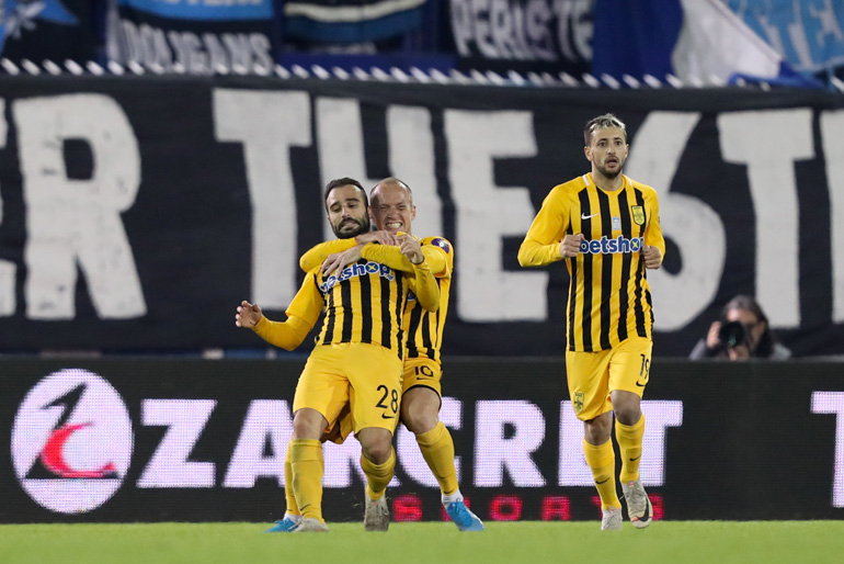 Από το κόρνερ του Ροντρίγκο Γκάλο, ο Βέλλιος που ήταν πεσμένος έπιασε ένα απίθανο γυριστό σουτ και σημείωσε το 1-0 στο 24′! Οι «κίτρινοι» ανέβασαν την απόδοσή τους και με μπροστάρη τον Γιάννη Φετφατζίδη δημιούργησαν επικίνδυνες καταστάσεις μπροστά στην εστία του Μπάλαζ Μέγιερι. Σε μια από αυτές, στο πρώτο λεπτό των καθυστερήσεων του πρώτου μέρους, Χαβιέ Ματίγια και Φετφατζίδης «έκρυψαν» την μπάλα για να ισοφαρίσει ο Μπρούνο Γκάμα με αριστερό σουτ!