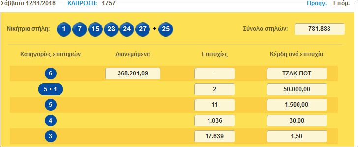 Οι τυχεροί αριθμοί της σημερινής κλήρωσης του ΛΟΤΤΟ (1757, 12/11/2016)...