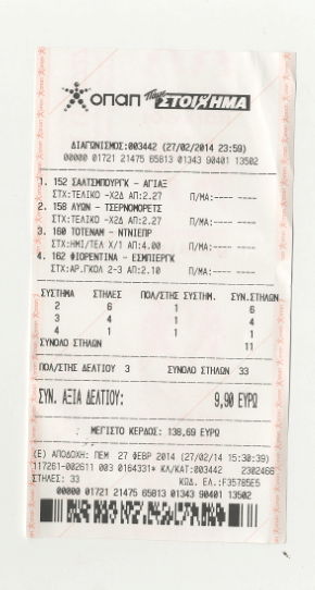 Το στοίχημα είναι έμπνευση. Δεν υπάρχει καταναγκασμός. Σημασία έχει η επιτυχία. Η επιτυχία δημιουργεί καλή ψυχολογία και η αυτοπεποίθηση οδηγεί στο ταμείο. Η στήλη θα ενημερώνεται, όποτε…