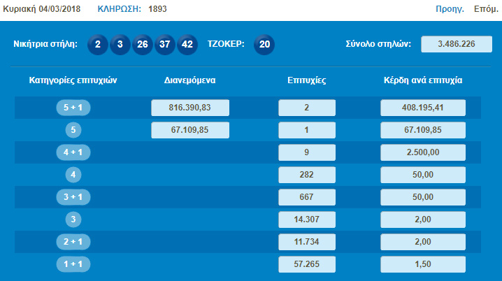 Δύο νικητές στην κλήρωση του Τζόκερ