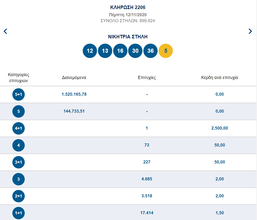 Οι τυχεροί αριθμοί στη σημερινή κλήρωση Τζόκερ είναι οι εξής: 12, 36, 16, 30, 13 και Τζόκερ ο αριθμός 5.