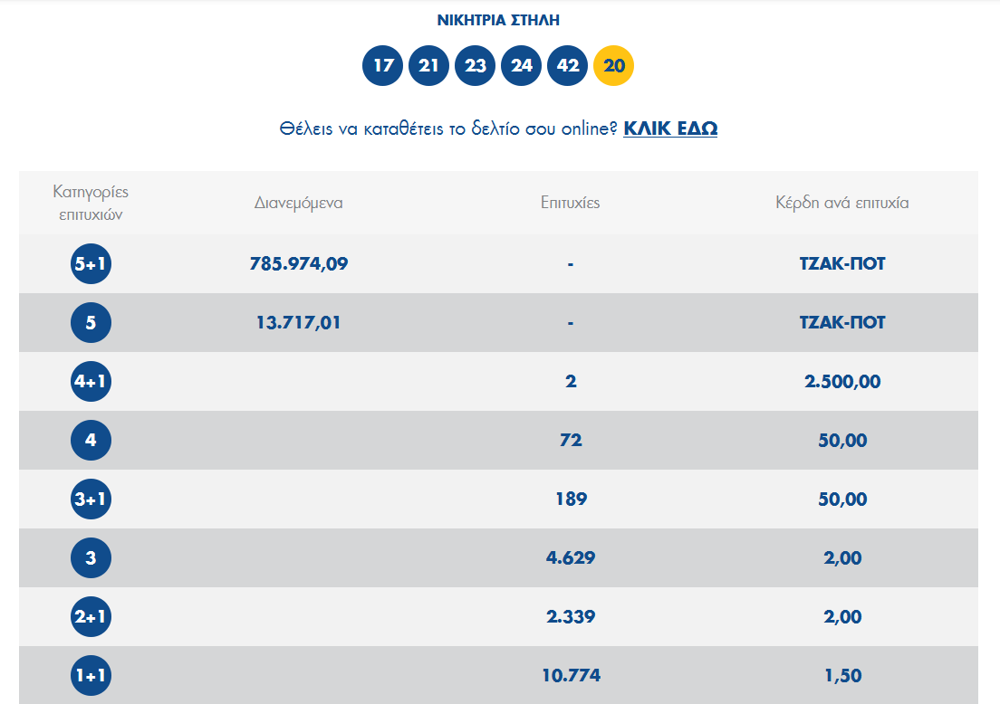 Διπλό τζακ ποτ στο Τζόκερ σημειώθηκε την Τρίτη (22/12), καθώς δεν βρέθηκαν νικητές στις δύο πρώτες...