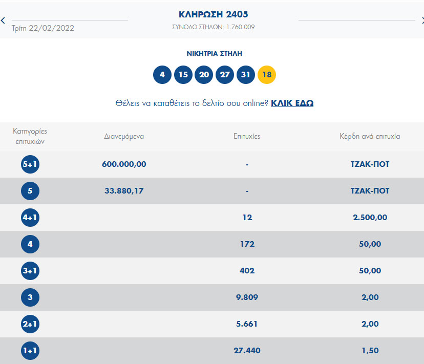 Χωρίς νικητές στις δύο πρώτες κατηγορίες ολοκληρώθηκε την Τρίτη (22/2) η κλήρωση και η διαλογή στο Τζόκερ...
