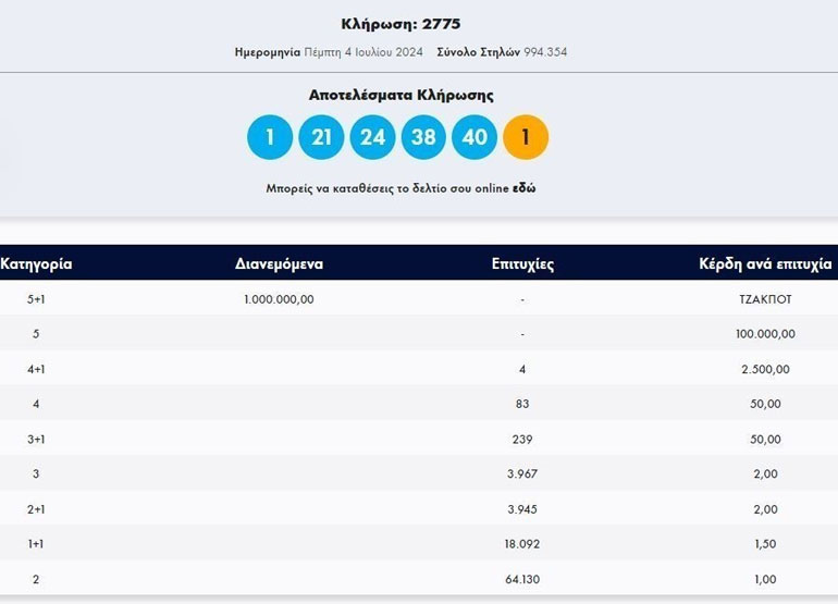 Διπλό τζακ ποτ στο Τζόκερ