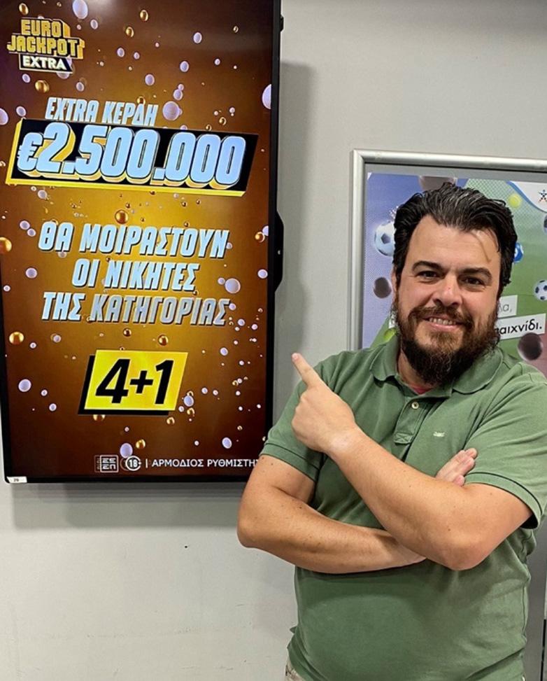 «Το Eurojackpot πρωτοπορεί και μοιράζει extra κέρδη στις κληρώσεις της Τρίτης, 22 Οκτωβρίου, και Παρασκευής, 25 Οκτωβρίου, με τους νικητές της πέμπτης κατηγορίας στην Ελλάδα να μοιράζονται από 2,5 εκατ. ευρώ επιπλέον. Αυτή τη στιγμή, όποιος προβλέπει σωστά τέσσερις αριθμούς στο πρώτο πεδίο και έναν στο δεύτερο, κερδίζει περίπου 400 ευρώ. Με το Eurojackpot Extra, αυτό το ποσό θα πολλαπλασιαστεί, ανάλογα και με το πόσοι νικητές θα προκύψουν στην Ελλάδα, στην κατηγορία 4+1», εξηγεί ο Κωνσταντίνος Καλλιγιαννάκης, ιδιοκτήτης καταστήματος ΟΠΑΠ στον Άλιμο