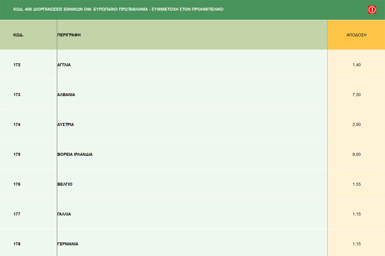 Τα ειδικά στοιχήματα αναμένεται να έχουν την τιμητική τους στο Euro 2016. Δείτε τις αποδόσεις από το κουπόνι Πάμε Στοίχημα του ΟΠΑΠ για τις προκρίσεις των ομάδων στην φάση των «8» της διοργάνωσης.