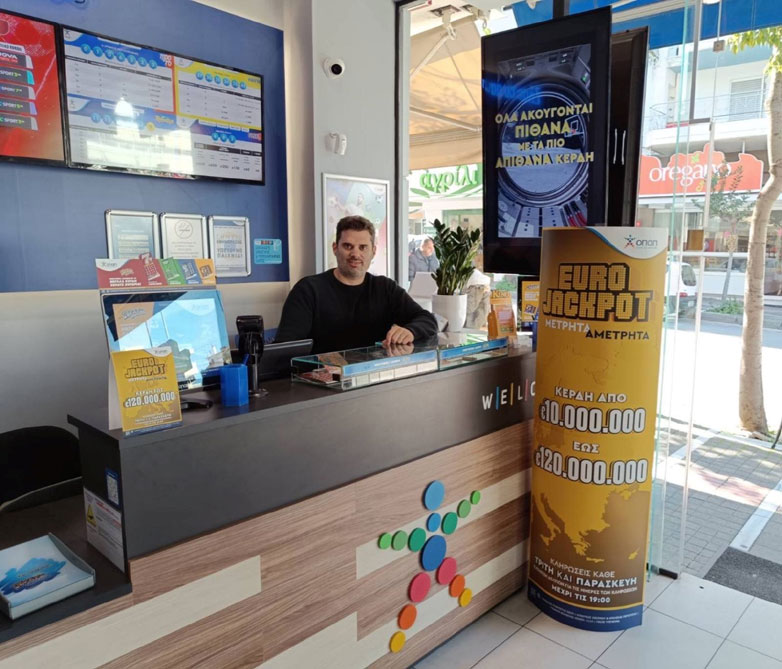 «Από την περασμένη Παρασκευή, όταν και πραγματοποιήθηκε η πρώτη κλήρωση με τη συμμετοχή της Ελλάδας, όλοι μιλούν για το Eurojackpot. Πρόκειται για ένα από τα μεγαλύτερα παιχνίδια στην Ευρώπη, στο οποίο παίρνουν μέρος 19 χώρες. Τομίνιμουμ έπαθλο της πρώτης κατηγορίας είναι 10 εκατ. ευρώκαι, μέσα από τα τζακ ποτ, μπορεί να φτάσει ακόμη και στα 120 εκατ. ευρώ, ποσό πρωτόγνωρο για τα ελληνικά δεδομένα», αναφέρει ο κ. Απόστολος Μάρκος, ιδιοκτήτης καταστήματος ΟΠΑΠ στην Πάτρα.