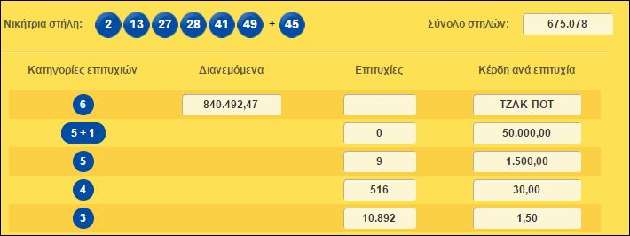 Οι τυχεροί αριθμοί του ΛΟΤΤΟ