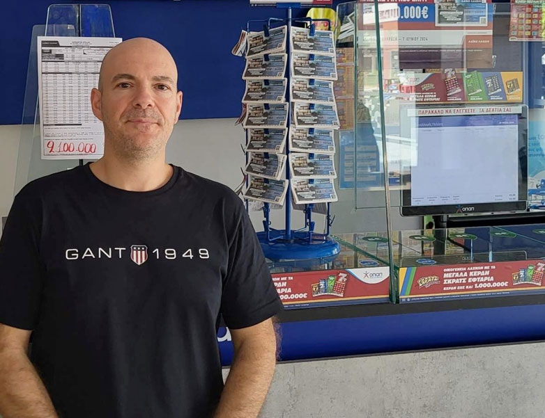 Αριστομένης Τηλέμαχου, ιδιοκτήτης καταστήματος ΟΠΑΠ, στην Καλαμάτα
