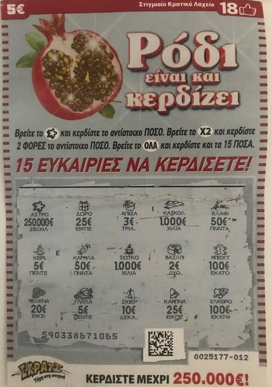 Ο Λαρισαίος τυχερός του ΣΚΡΑΤΣ δεν άντεξε τη συγκίνηση και λιποθύμησε όταν συνειδητοποίησε ότι το δελτίο «Ρόδι είναι και κερδίζει» που είχε αγοράσει από πρακτορείο της πόλης έκρυβε το μεγάλο ποσό. Ευτυχώς, η λιποθυμία του ήταν μόνο αποτέλεσμα του ενθουσιασμού του και ο τυχερός παίκτης αναμένεται να περάσει τα Χριστούγεννα της ζωής του με την οικογένειά του.