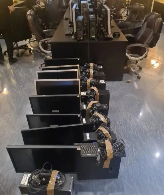 Κατά την έφοδο των αστυνομικών, βρέθηκαν και κατασχέθηκαν, μεταξύ άλλων, 53 ηλεκτρονικοί υπολογιστές, 2 κεντρικές μονάδες ηλεκτρονικού υπολογιστή “server”, 2 παιγνιομηχανήματα με δέκτες κερμάτων και χαρτονομισμάτων, 52- οθόνες, 2 ασύρματα τηλεχειριστήρια, 5 κάμερες και το χρηματικό ποσό των 202 ευρώ.