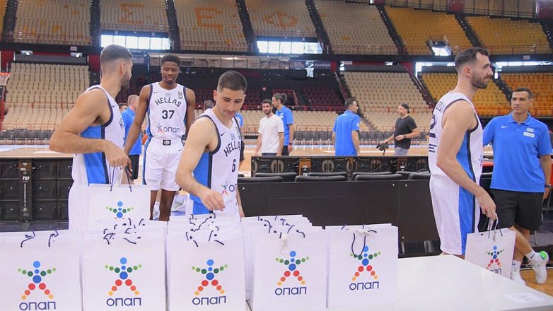 Ο ΟΠΑΠ ευχήθηκε καλή επιτυχία στην Εθνική Ομάδα και προσέφερε στους παίκτες συσκευασίες με δώρα από τις εταιρείες του ΟΠΑΠ Forward