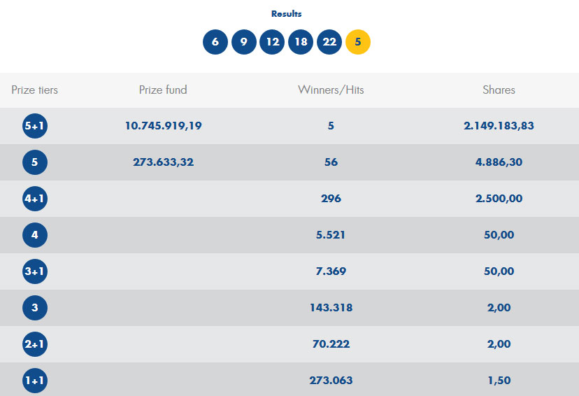 Οι τυχεροί αριθμοί είναι οι: 6, 9, 12, 18, 22