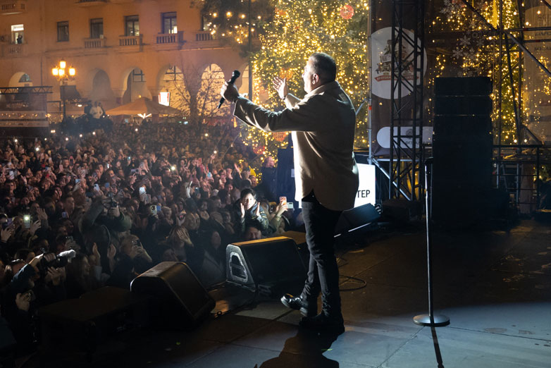Γιορτινές μελωδίες και παραδοσιακά κάλαντα δημιούργησαν μια ζεστή, εορταστική ατμόσφαιρα, ενώ τη στιγμή που το επιβλητικό χριστουγεννιάτικο δέντρο φωτίστηκε, ο ουρανός της πόλης γέμισε με αμέτρητα πυροτεχνήματα, δημιουργώντας ένα εντυπωσιακό θέαμα.