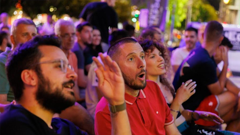 Πλήθος κόσμου βρέθηκε στο κατάστημα ΟΠΑΠ στο Αιγάλεω για να παρακολουθήσει τους αγώνες του Ευρωπαϊκού
