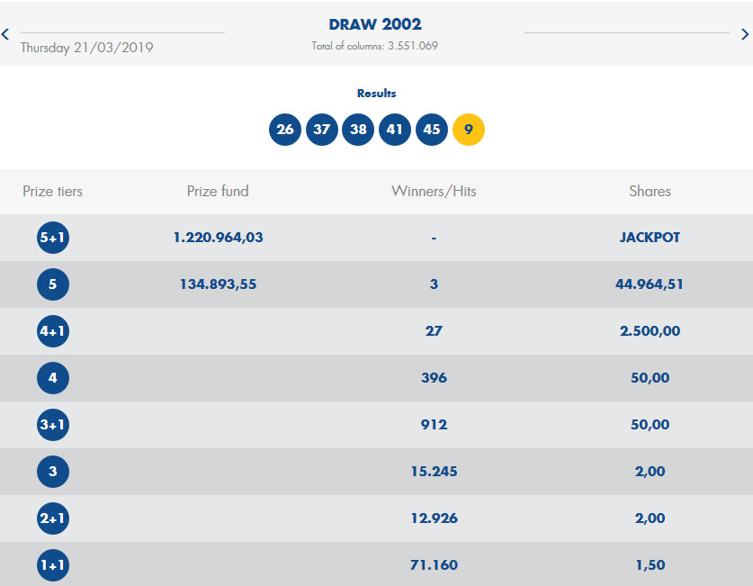 Οι αριθμοί που κληρώθηκαν είναι οι: 26, 37, 38, 41, 45