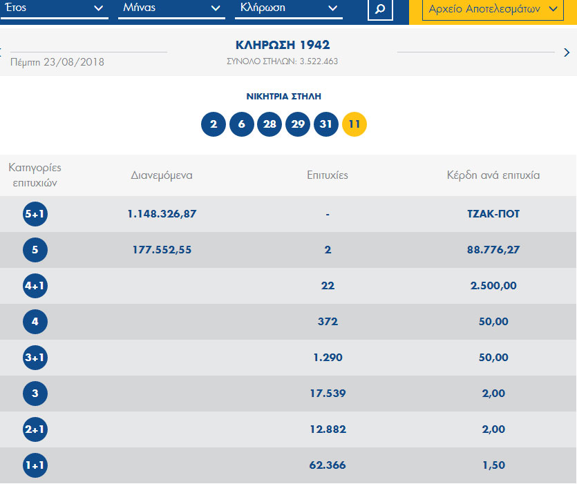 Τζακ ποτ σημειώθηκε στην αποψινή κλήρωση του Τζόκερ ...