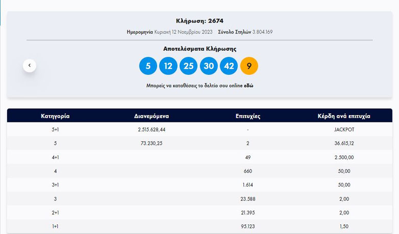 Χωρίς νικητή στην πρώτη κατηγορία ολοκληρώθηκε η αποψινή κλήρωση του Τζόκερ.