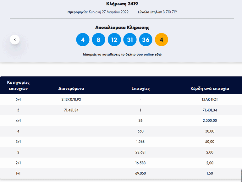 Χωρίς νικητή στην πρώτη κατηγορία ολοκληρώθηκε η κλήρωση και η διαλογή στο Τζόκερ. Αντίθετα, στη δεύτερη κατηγορία βρέθηκε ένα δελτίο που κερδίζει 71.431,34 ευρώ...