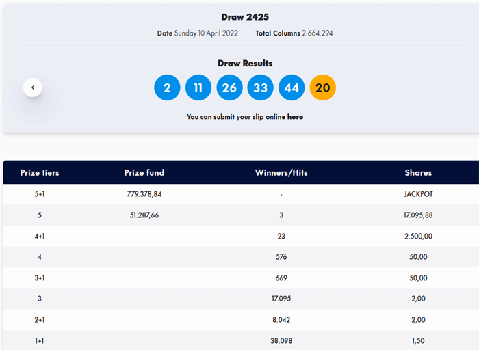 Οι τυχεροί αριθμοί: 2, 11, 26, 33, 44. ΤΖΟΚΕΡ: 20.