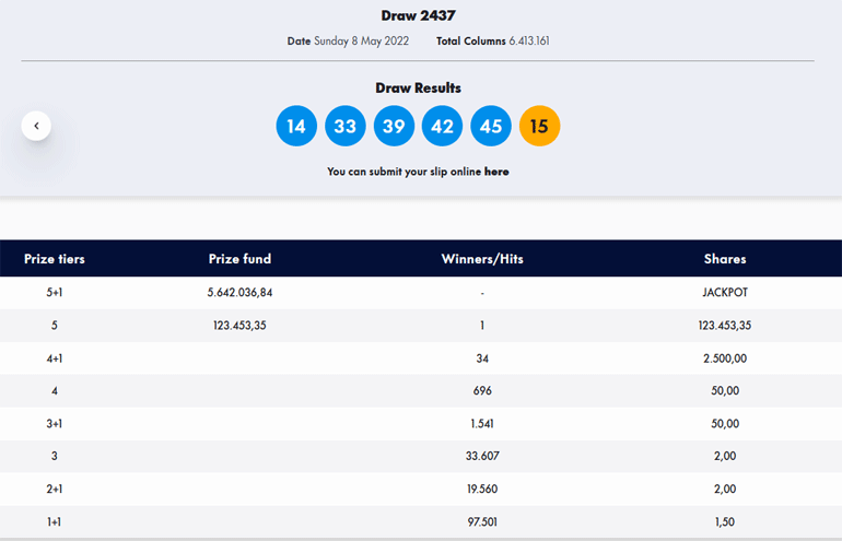 Οι τυχεροί αριθμοί: 14, 33, 39, 42, 45. ΤΖΟΚΕΡ: 15.