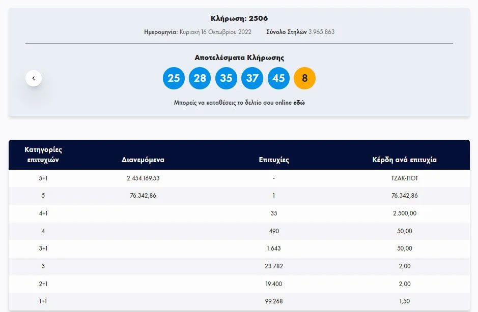 Χωρίς νικητή στην πρώτη κατηγορία ολοκληρώθηκε η κλήρωση και η διαλογή στο Τζόκερ. Αντίθετα, στη δεύτερη κατηγορία βρέθηκε...