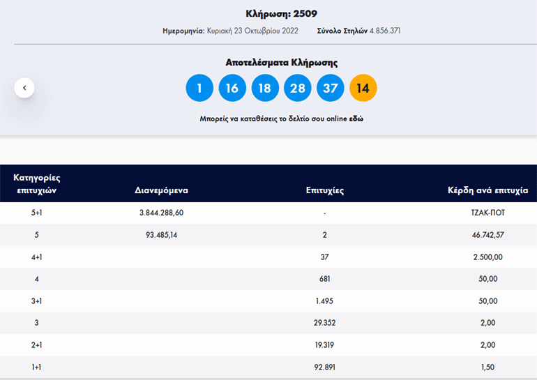 Χωρίς νικητή στην πρώτη κατηγορία ολοκληρώθηκε η κλήρωση και η διαλογή στο Τζόκερ. Αντίθετα, στη δεύτερη κατηγορία βρέθηκαν δύο δελτία που κερδίζουν από...