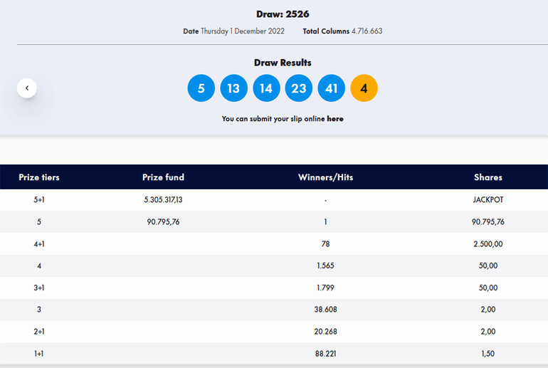 Οι τυχεροί αριθμοί: 5, 13, 14, 23, 41. ΤΖΟΚΕΡ: 4.