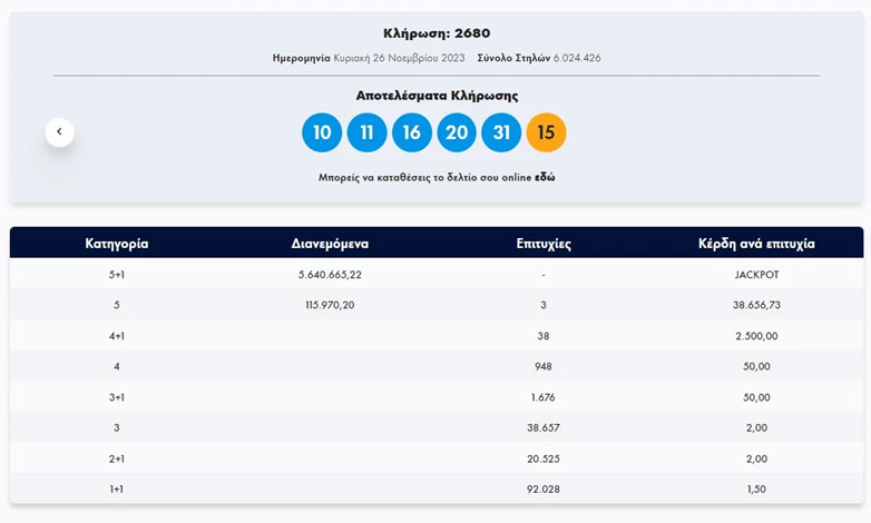 Στη δεύτερη κατηγορία βρέθηκαν 3 δελτία που κερδίζουν από 38.656,73 ευρώ...