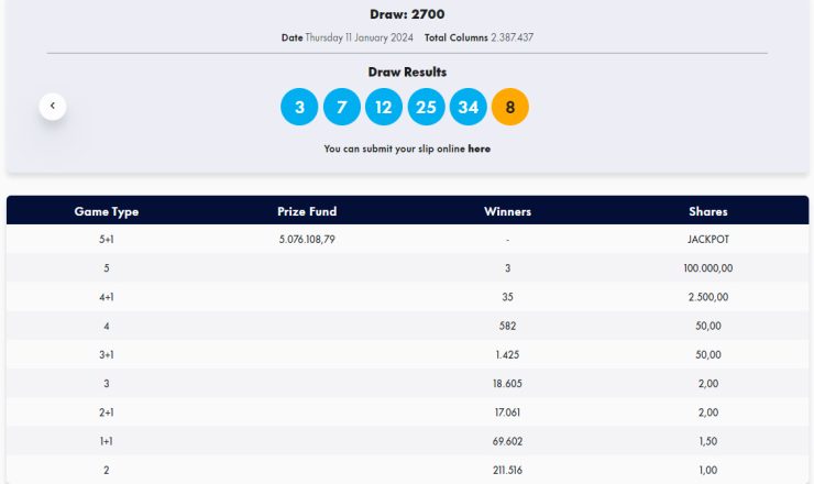 Χωρίς νικητή στην πρώτη κατηγορία ολοκληρώθηκε η αποψινή κλήρωση του Τζόκερ.