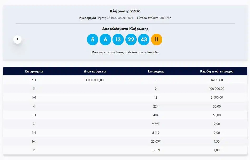 Στη δεύτερη κατηγορία βρέθηκαν δύο δελτία που κερδίζουν από 100.000 ευρώ...