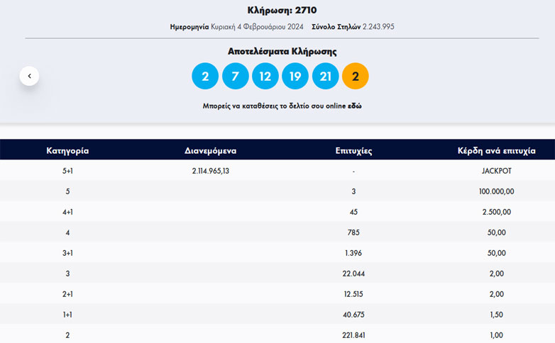 Στη δεύτερη κατηγορία βρέθηκαν δύο δελτία που κερδίζουν από 100.000 ευρώ...