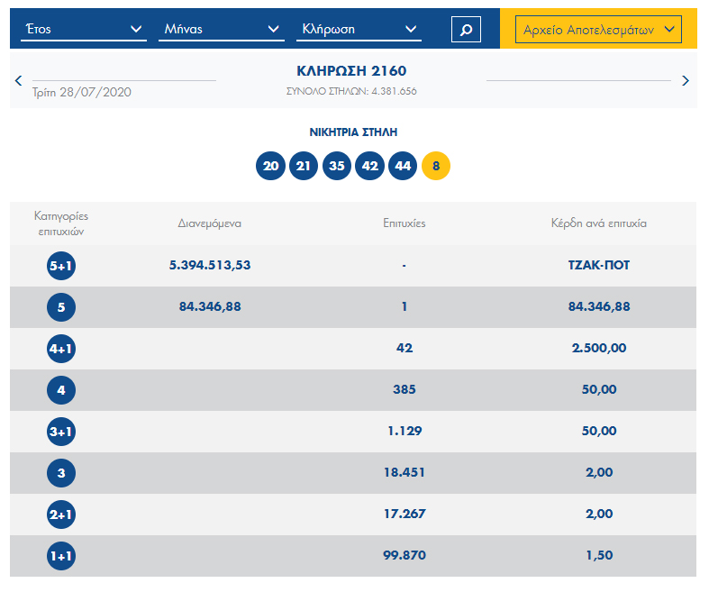 Tζακ ποτ σημειώθηκε στην κλήρωση του Τζόκερ, που πραγματοποιήθηκε την Τρίτη. Οι τυχεροί αριθμοί...