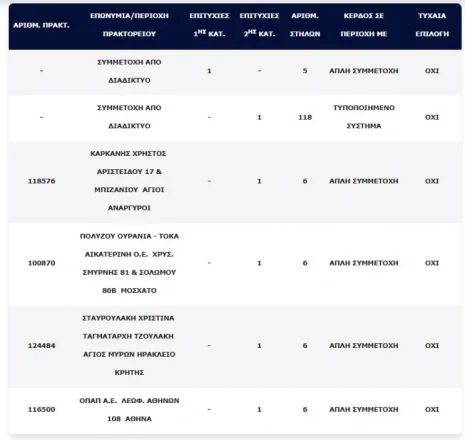 Στην κλήρωση της Πέμπτης υπήρξαν και πέντε νικητές στη δεύτερη κατηγορία (5αρια), που κερδίζουν από 100.000 ευρώ.