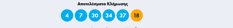 Οι τυχεροί αριθμοί της κλήρωσης ήταν οι εξής: 4, 7, 30, 34, 37 και τζόκερ το 18.