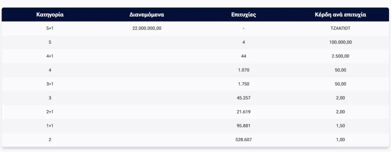 Παράλληλα 4 τυχεροί στη κατηγορία 5 κερδίζουν από 100.000 ευρώ