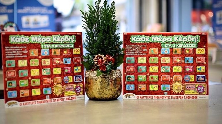 Το ΣΚΡΑΤΣ ημερολόγιο «ΚΑΘΕ ΜΕΡΑ ΚΕΡΔΗ», το οποίο κοστίζει 15 ευρώ, μοιράζει κέρδη έως και 1.000.000 ευρώ, ενώ ένας στους τρεις λαχνούς κερδίζει. Οι παίκτες αποκαλύπτουν ένα πεδίο κάθε ημέρα, σαν μια αντίστροφη μέτρηση για τη νέα χρονιά. Υπάρχουν 31 συν 1 ευκαιρίες για κέρδη.