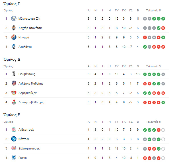 Στον 3ο όμιλο, η Μάντσεστερ Σίτι «καπάρωσε» την πρωτιά μετά την εντός έδρας ισοπαλία (1-1) με τη Σαχτάρ Ντόνετσκ, ενώ η δεύτερη θέση θα κριθεί στο φίνις, καθώς η νίκη της Αταλάντα στο Μπέργκαμο επί της Ντιναμό Ζάγκρεμπ (2-0) έβαλε στο «κόλπο» και τους Ιταλούς.