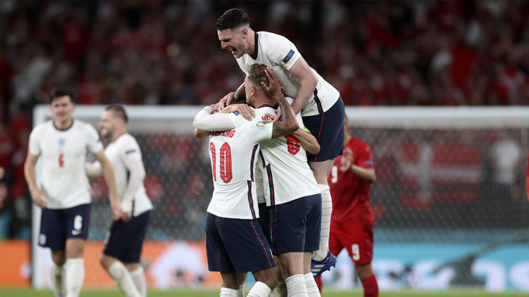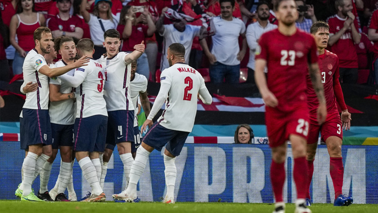 Tην πρόκριση για πρώτη φορά στην ιστορία της σε τελικό του Euro πανηγύρισε το βράδυ της Τετάρτης η Αγγλία, η οποία, αν και δυσκολεύτηκε να κάμψει την αντίσταση της μαχητικής Δανίας, πέτυχε εντέλει τον στόχο της.