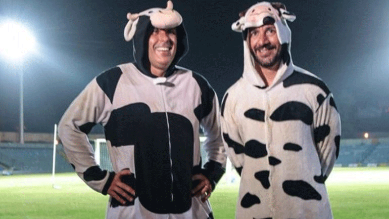 Κι αυτό γιατί αμφότεροι εμφανίστηκαν για δηλώσεις ντυμένοι… αγελάδες, με τον ισχυρό άνδρα του συλλόγου να εξηγεί ότι «έτσι τιμάμε τους οπαδούς μας, οι αγελάδες εκπροσωπούν σε μεγάλο βαθμό την περιοχή».