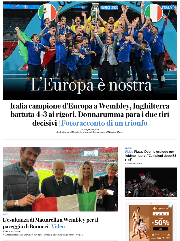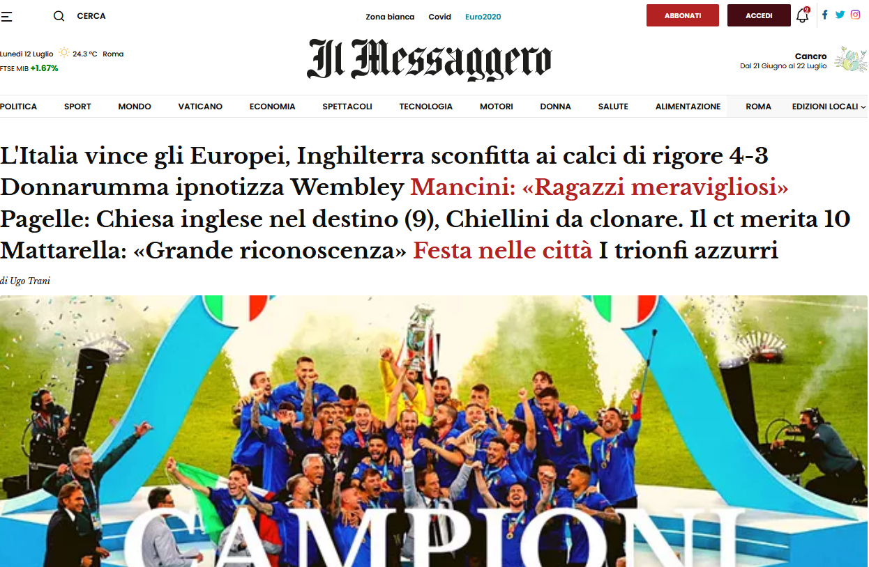 Il Messaggero: «Η Ιταλία κέρδισε το Ευρωπαϊκό»