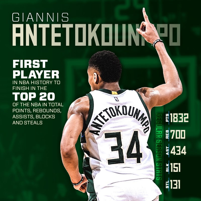 Πάντως με το κλείσιμο της κανονικής διάρκειας του NBA ο «Greek Freak», o οποίος σημειωτέον αναδείχθηκε πολλές φορές παίκτης της εβδομάδας και του μήνα στην ανατολική περιφέρεια, πέρασε για ακόμη έναν λόγο στο πάνθεον της ιστορίας του πρωταθλήματος.