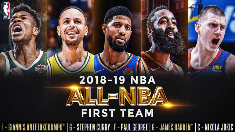 Πιο συγκεκριμένα ο «Greek Freak» ψηφίστηκε ομόφωνα (100/100), παίρνοντας θριαμβευτικά θέση στην κορυφαία πεντάδα, την οποία συμπληρώνουν οι Στεφ Κάρι (91/100), Τζέιμς Χάρντεν (100/100), Πολ Τζορτζ (71/100) και Νίκολα Γιόκιτς (59/100).