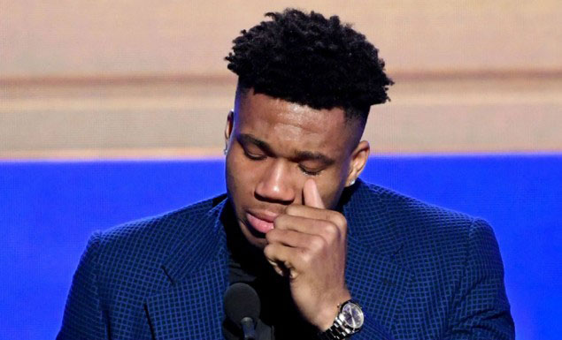 Kατά τη διάρκεια της βράβευσής του ο “Greek Freak”, ο οποίος βίωσε φέτος την καλύτερη σεζόν της καριέρας του σε προσωπικό και ομαδικό επίπεδο, αριθμώντας 27.7 πόντους, 12.5 ριμπάουντ, 5.9 ασίστ, 1.3 κλεψίματα και 1.5 κοψίματα μέσο όρο σε 32.8 λεπτά συμμετοχής, γνώρισε την αποθέωση από τους παρευρισκόμενους και συγκίνησε τους πάντες με την ομιλία του.